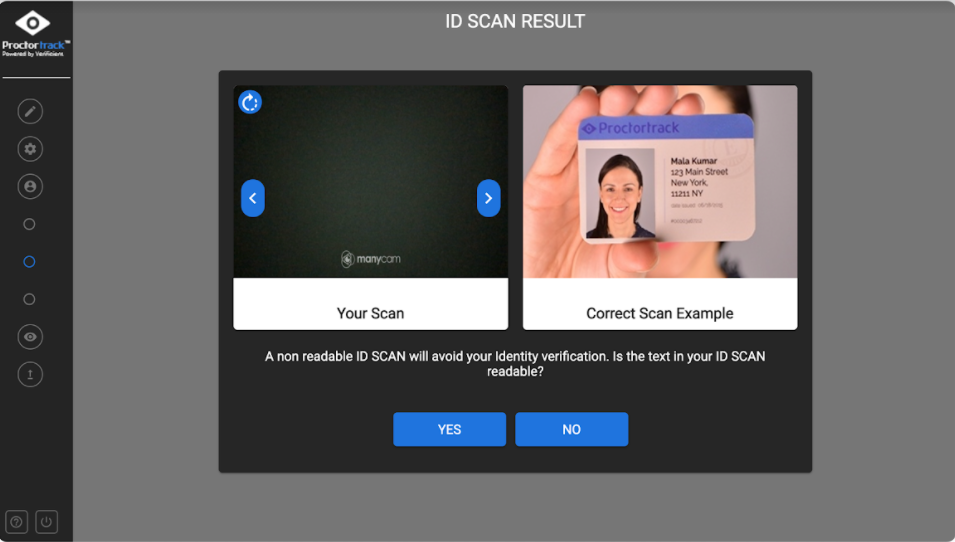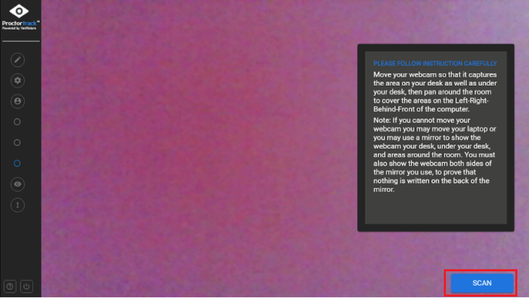 5. hold a valid photo ID (Driver’s License or Student ID), up to the camera, and click “Scan”.