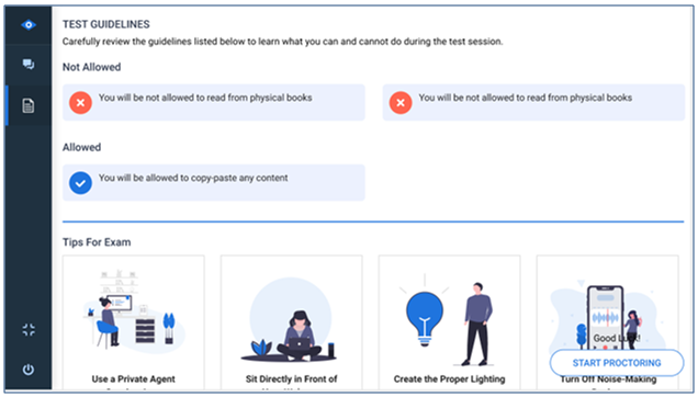 8. Review the Exam Guidelines and go through the TEST GUIDELINES and click on the 'START PROCTORING' button.