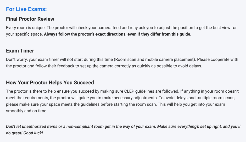 Always comply with the proctor’s directions during the exam — it will save you time and prevent interruptions.