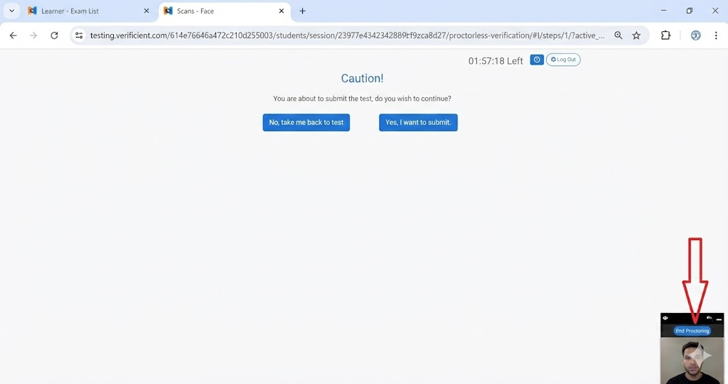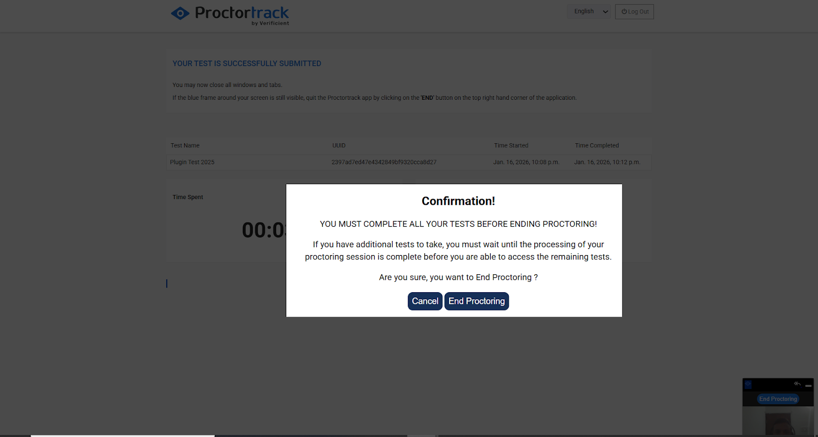 A confirmation pop-up will appear. Click End Proctoring again to confirm.