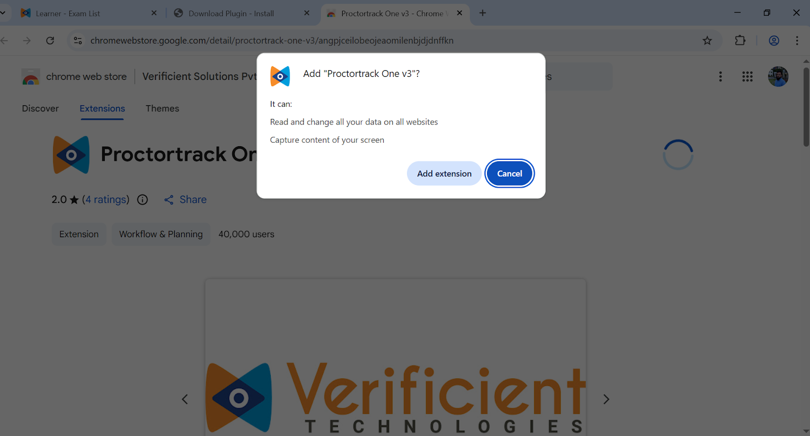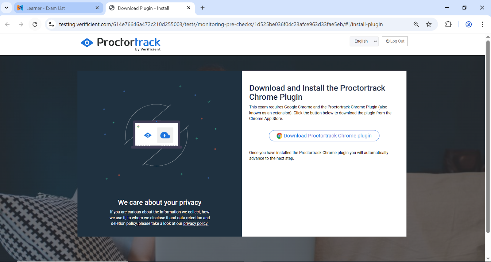 Click Download Proctortrack Chrome Plugin. You will be redirected to the Chrome Web Store.