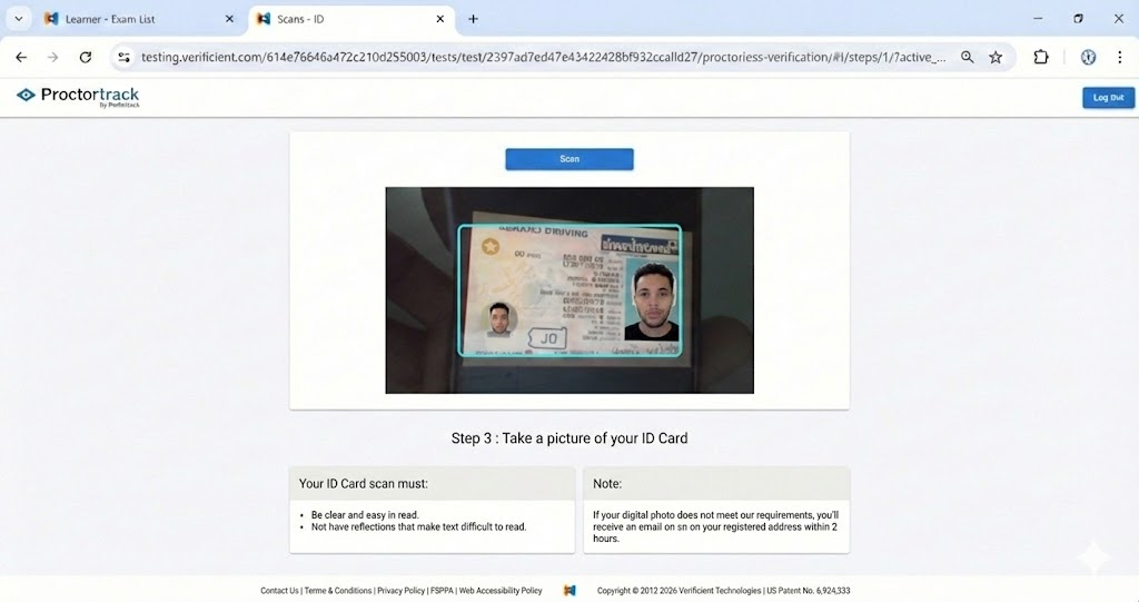 Click Scan. Ensure the text on the ID is legible and not obscured by glare.