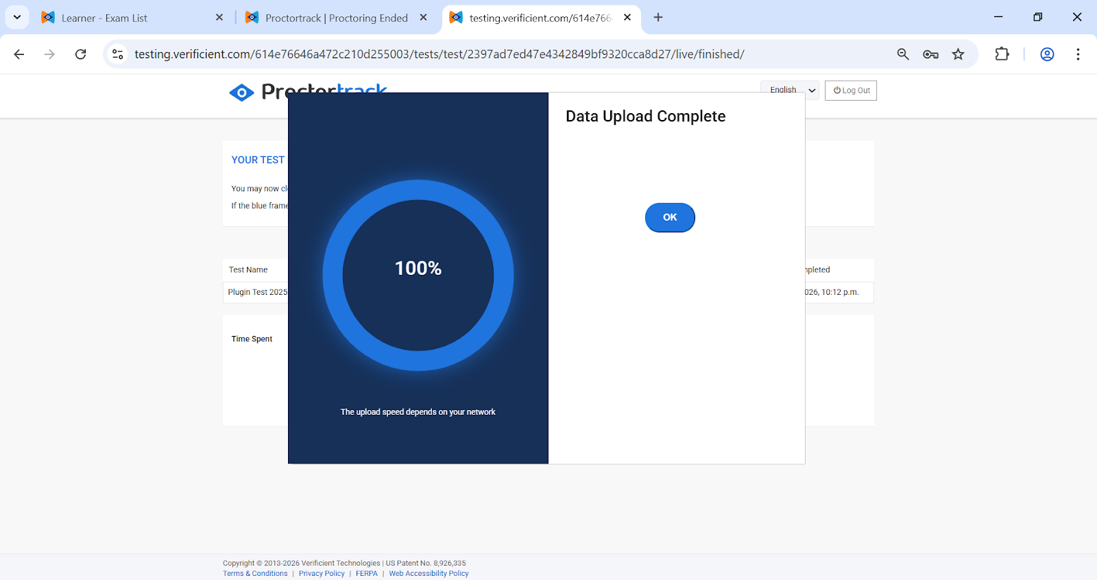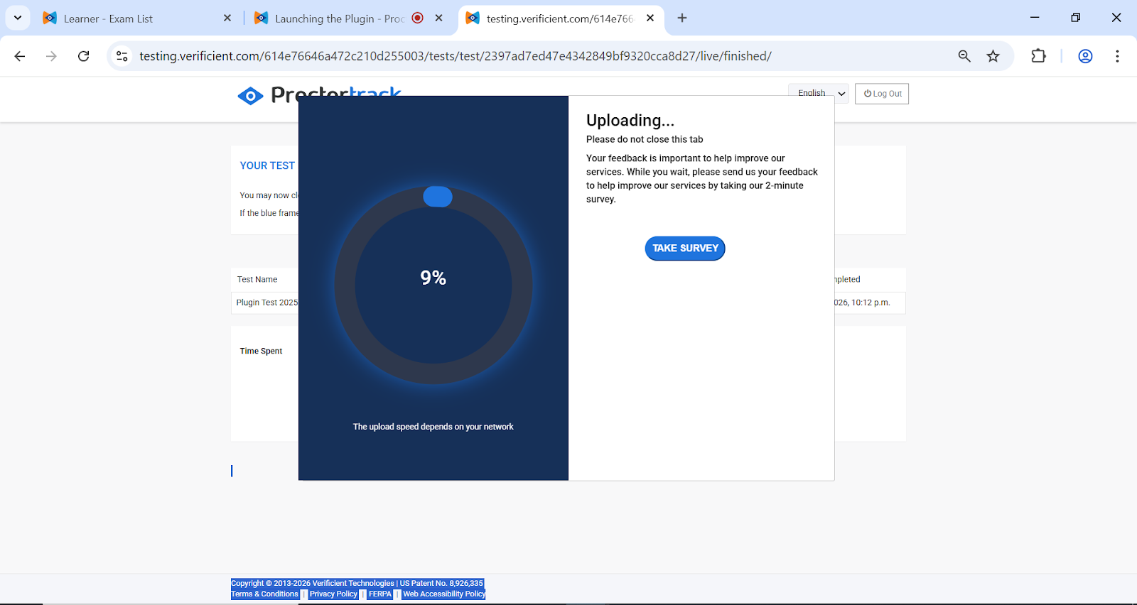 Wait for Upload: The Proctortrack app will begin uploading your session data.
