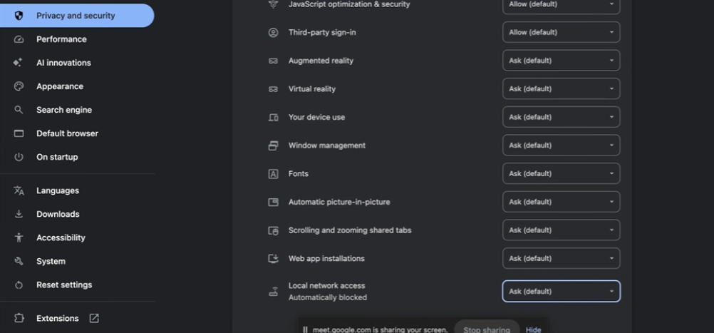 ✅ Google Chrome: How to re-enable Local Network Access